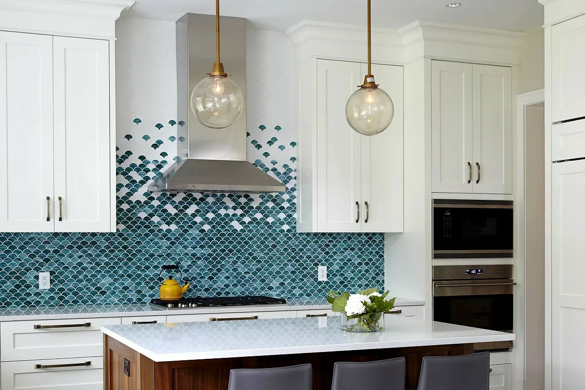 Чтобы интерьер получился целостным и гармоничным, выберите «фокусную точку» ― элемент, который будет в первую очередь бросаться в глаза при входе. В зависимости от кухни можно использовать: