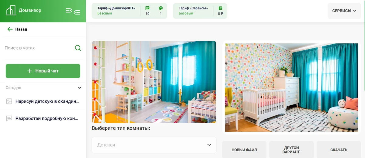 К качеству генераций вопросов нет: процесс идет быстро, артефакты не наблюдаются. Выше вы можете видеть, как изменилась детская при замене стиля на прибрежный. По моему мнению, главная проблема Домвизор — обилие платных операций.