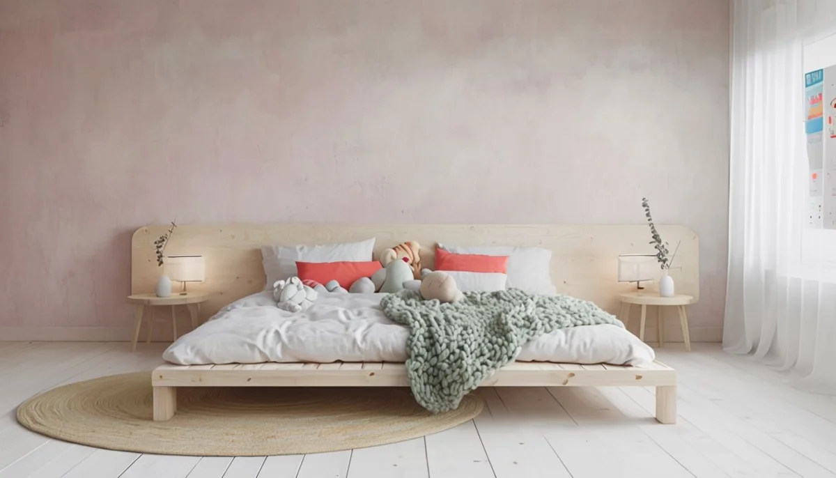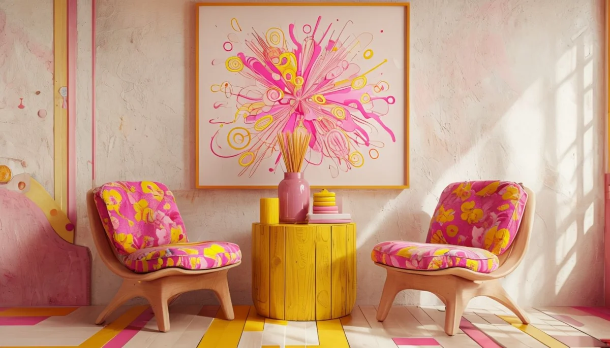 Для визуализации идей нейросеть оказалась неплоха, у изображений высокая детализация. Но на первой генерации есть артефакты, как это часто бывает с ИИ: постеры на шторах вместо стены, странно выглядящие игрушки. Сочетание розового и желтого на втором фото кажется чересчур. Также для составления промпта пришлось пользоваться переводчиком.