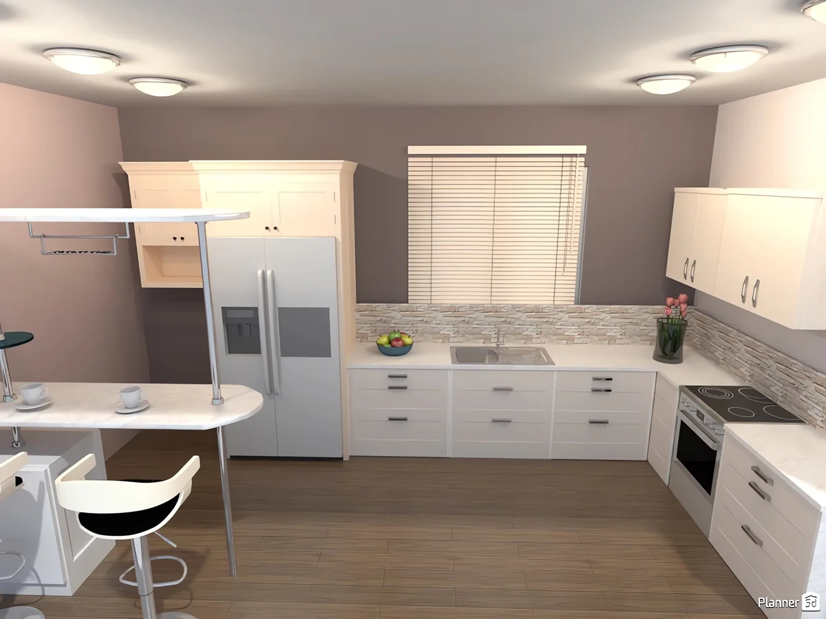В приложении можно реализовать много решений: например, создавать кухни-гостиные или многоуровневые помещения с подиумом для гарнитура.