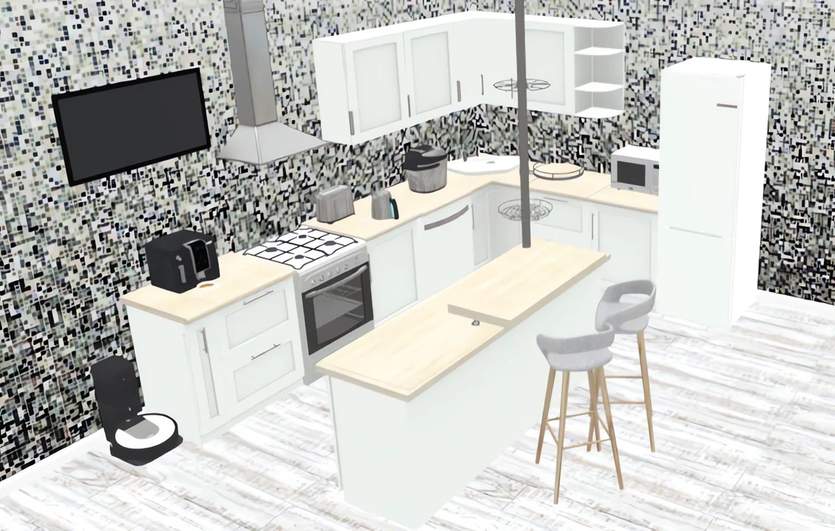 На базовом тарифе в планировщике интерьера есть модели для кухонного пространства — шкафы, кухонная техника, объекты для обеденной зоны. Но без подписки разблокировано только 5% макетов.