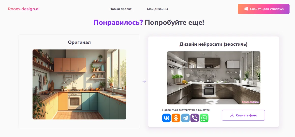 Что делает: генерирует, как будет выглядеть пространство с фото в разных стилях.